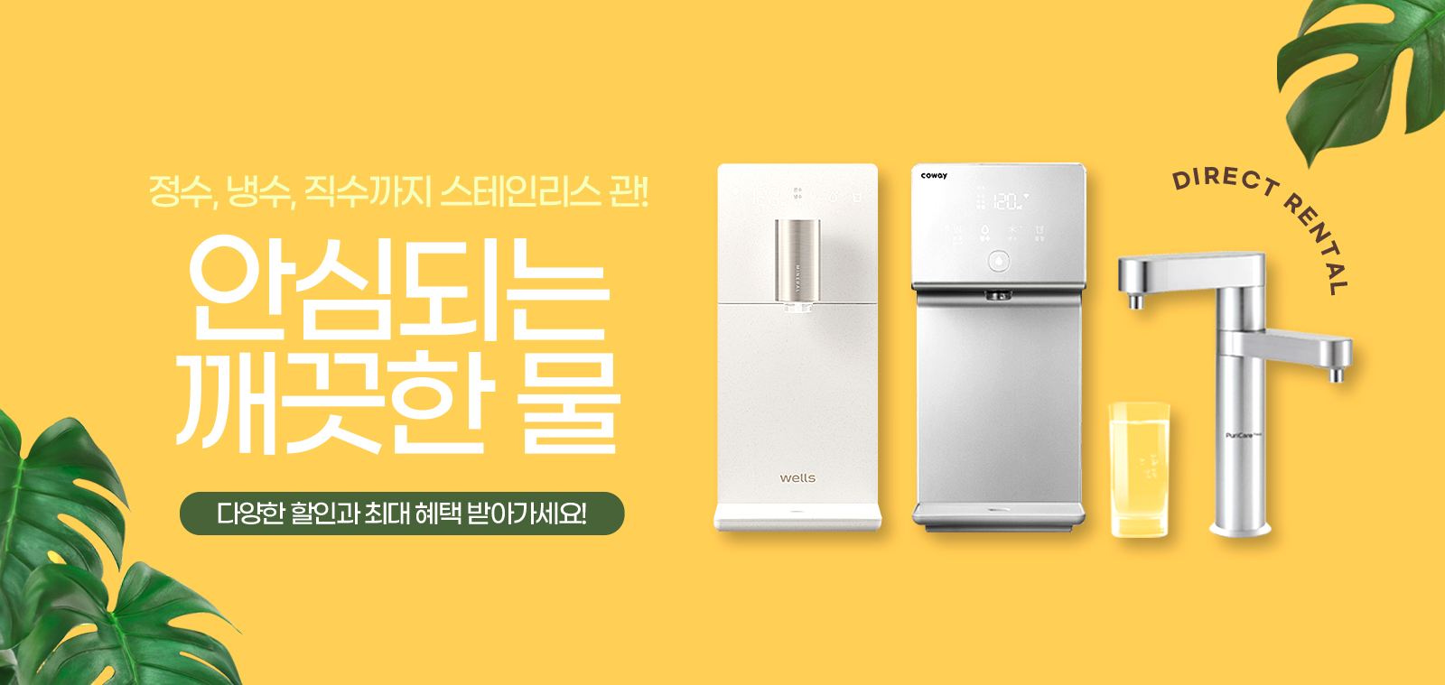 WS672웰스 슬림원 직수 정수기 (냉온정)